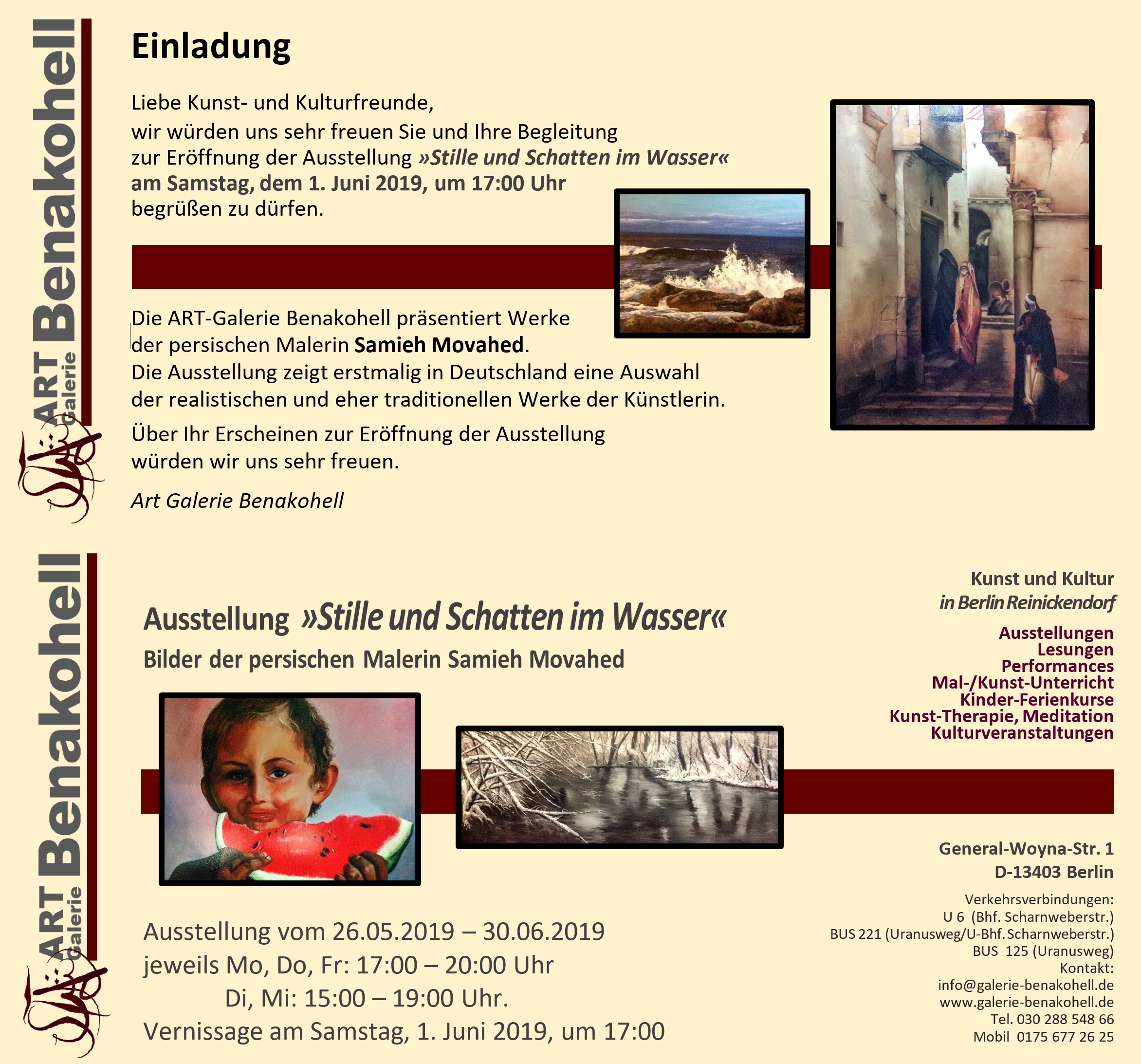 Ausstellung vom 26.04.2019 – 18.05.2019 Vernissage am Freitag, dem 26. April 2019; Beginn 19:00 Uhr Finissage am Samstag, dem 18. Mai 2019; Beginn 17:00 Uhr | ||
