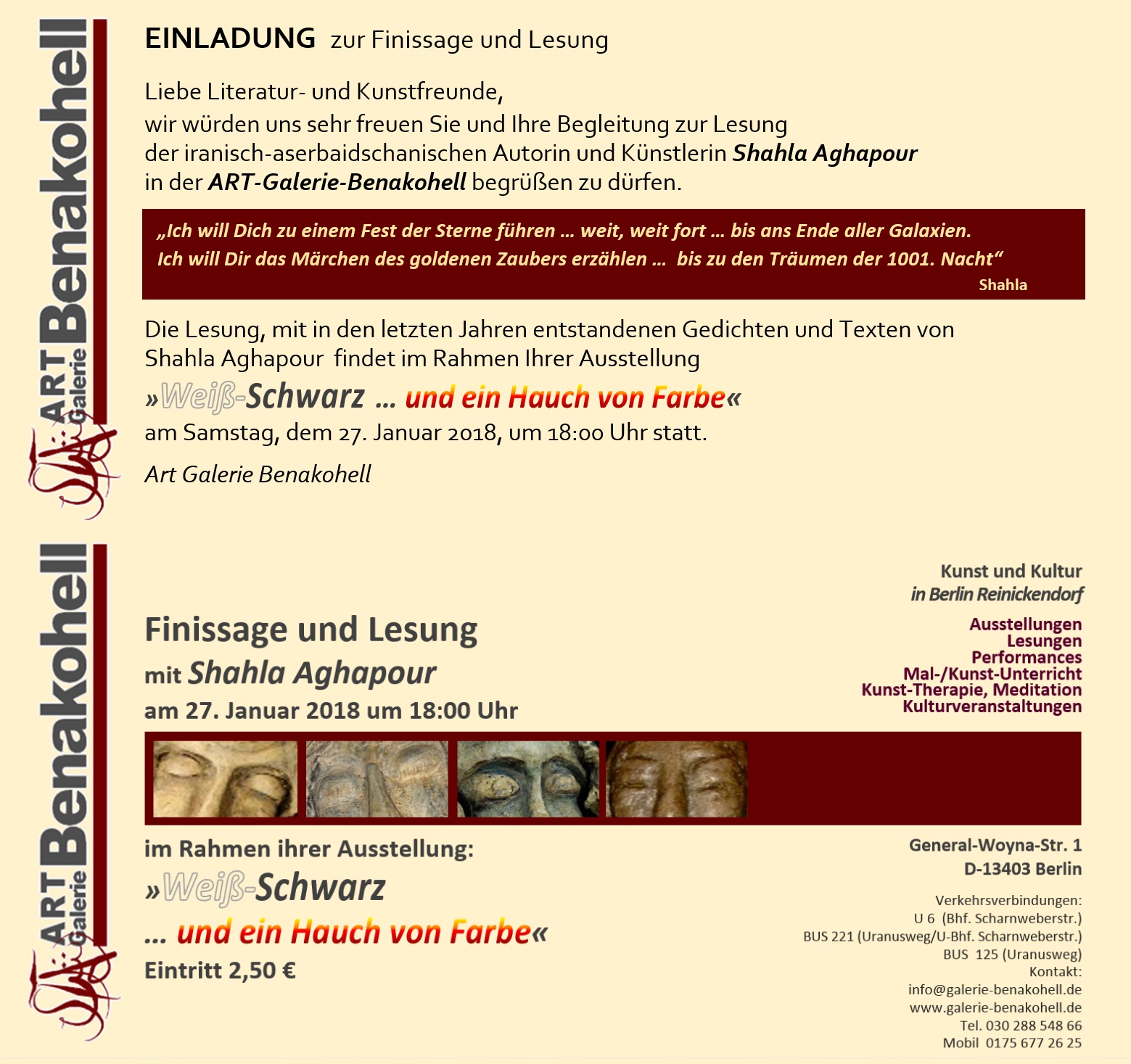 Bilder und Skulpturen von Shahla Aghapour Vernissage am 31.10.2015, Beginn 19:30 Uhr Ausstellung vom 31.10.2015 – 6.02.2016 jeweils Di. bis Do. von 14 – 20 Uhr | ||