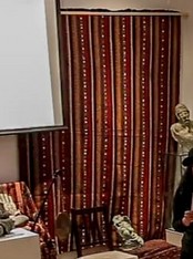 Als erstes betrachten wir einen gut erhaltenen alten Susani-Wandbehang aus Vorderindien, der etwa 80 Jahre alt ist. Es handelt sich dabei um ein Grundgewebe, das im Patchwork-Stil mit vielen kleinen Einzelteilen belegt wurde. Diese Teile wiederum zeigen mannigfaltige kleine Verzierungen aus Gold und Silberfäden sowie Spiegelstücken.Unser zweites Exponat ist ein aus Azerbaidschan stammender JIJIM aus dem 19. Jahrhundert. Typisch für diese besondere Form eines Kelim-Flachgewebes ist das Streifenmuster und die etwas andere Webtechnik des meist im südlichen Kaukasus gefertigten Stückes. Bei der meist von Nomaden verwendeten Jijim-Technik werden auf kleinen transportablen Webstühlen einzelne schmale Bahnen gewebt, die dann später zu einem großen Gewebe vernäht werden. Häufig wird dabei auch Seide verwandt.