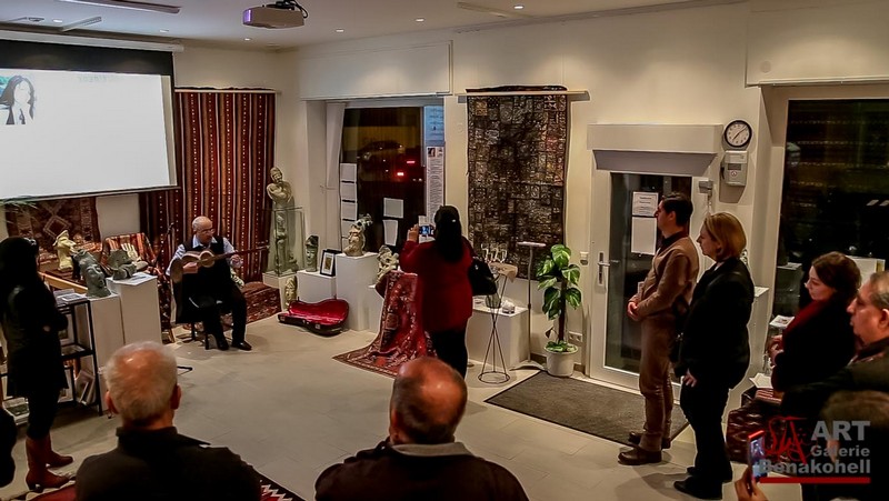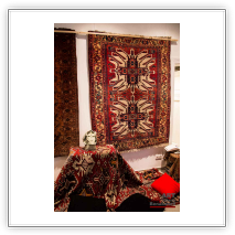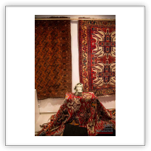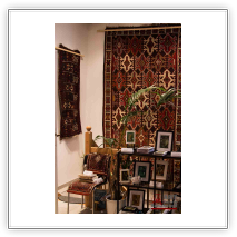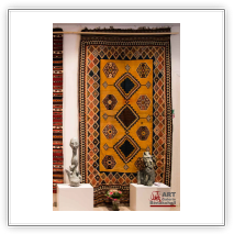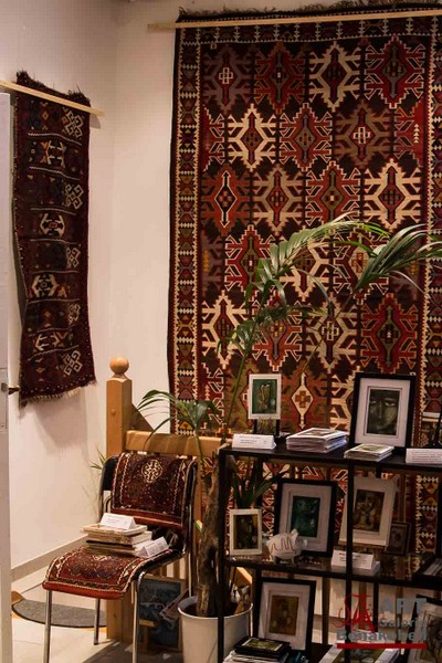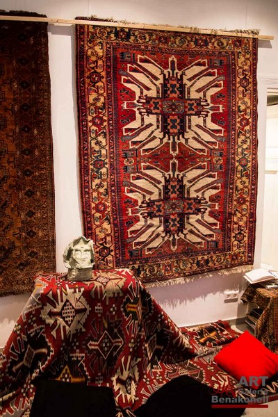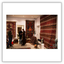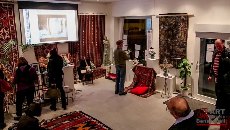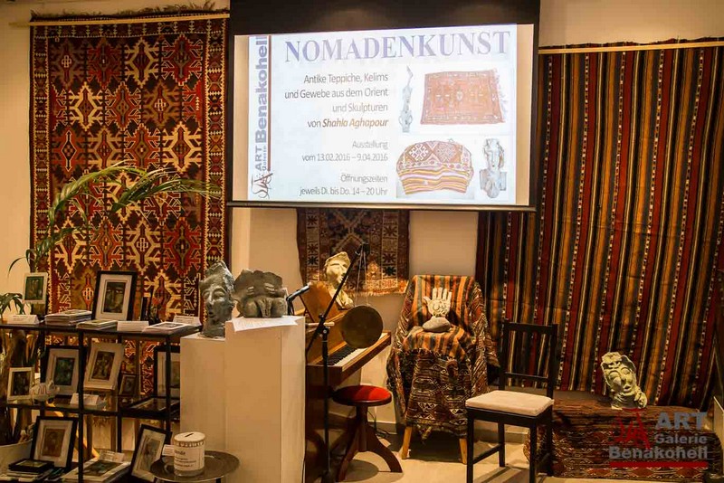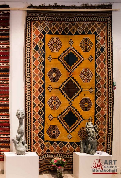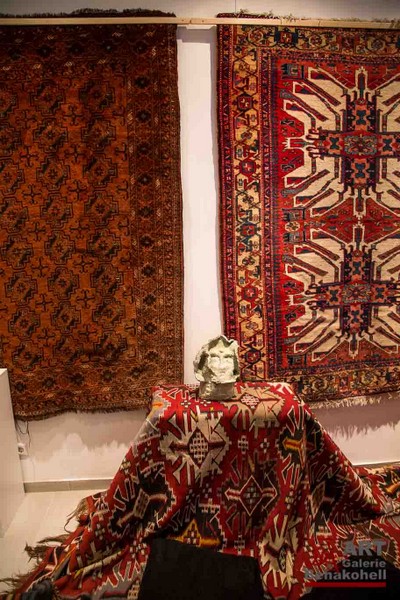 mit antiken Teppichen, Kelims und Geweben aus dem Orient sowie Skulpturen von Shahla Aghapour